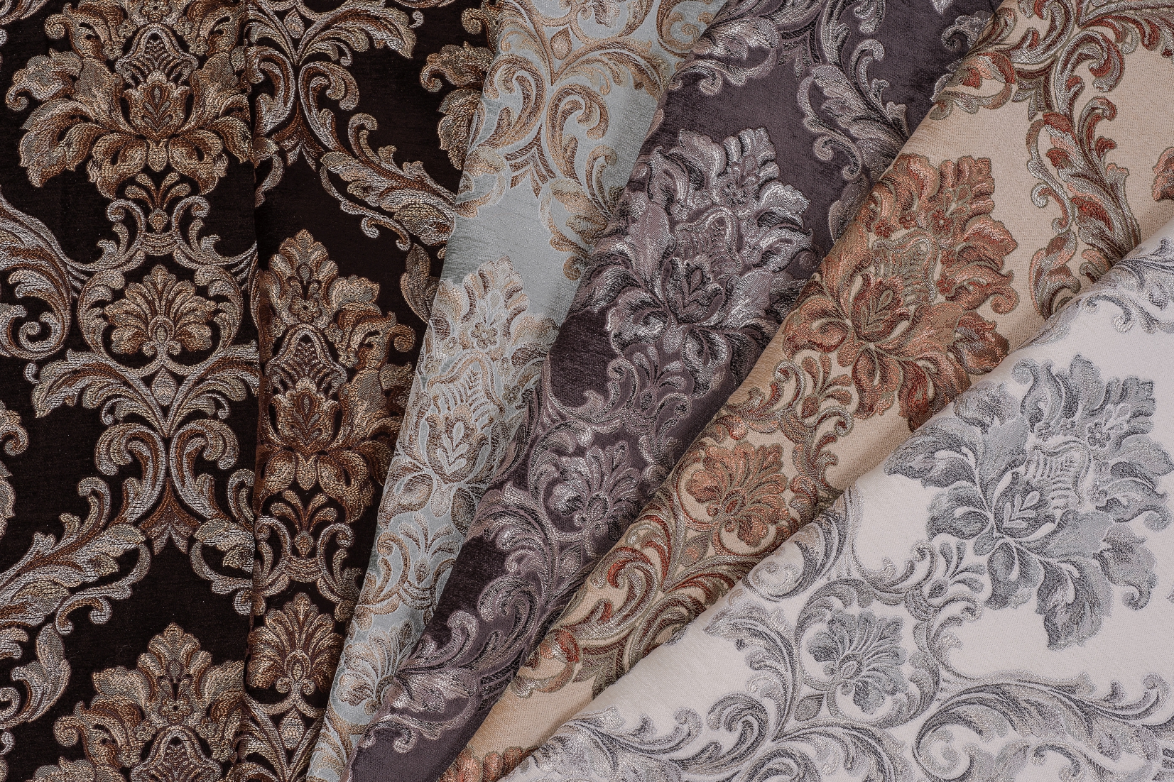 К традиционной эстетике классицизма апеллируют дворцовые вензеля и мелкие дамасские узоры (они могут выступать соло или в дуэте). Вкрадчивые тяжелые фактуры, бахрома, серьезный роскошный вид адресует нас к дворцово-исторической теме, ренессансу, барокко, классике, рококо. Дамаск как орнамент уходит корнями к арабескам, делая ткань уместной в восточных стилях (арабском, колониальном, марокканском).