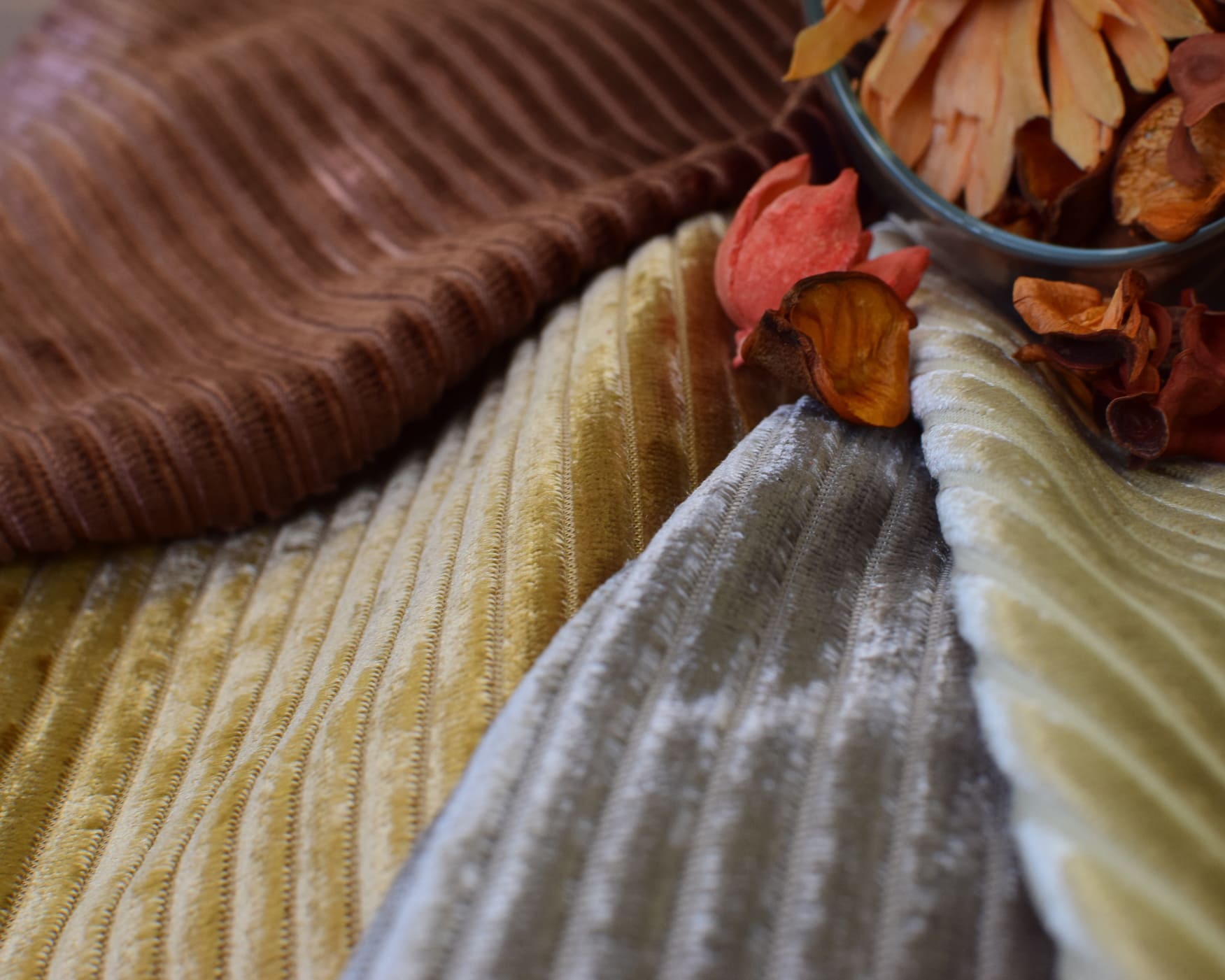 Колористическая карта коллекции представлена в 4-х, преимущественно спокойных классических оттенках, лишённых явных резких переходов или контрастов. Сдержанность нежно-бежевого, благородного золотого, воздушно-кремового и серебряно-серого мгновенно настраивают на умиротворение и наталкивая на мысли о размеренной беседе за чашечкой кофе или отдыхе перед камином в дождливый осенний вечер. Кроме того, материал обладает высокой износостойкостью, превышающей 30 000 циклов Мартиндейла, ткань прекрасно дышит, не задерживая грязь и посторонние запахи.