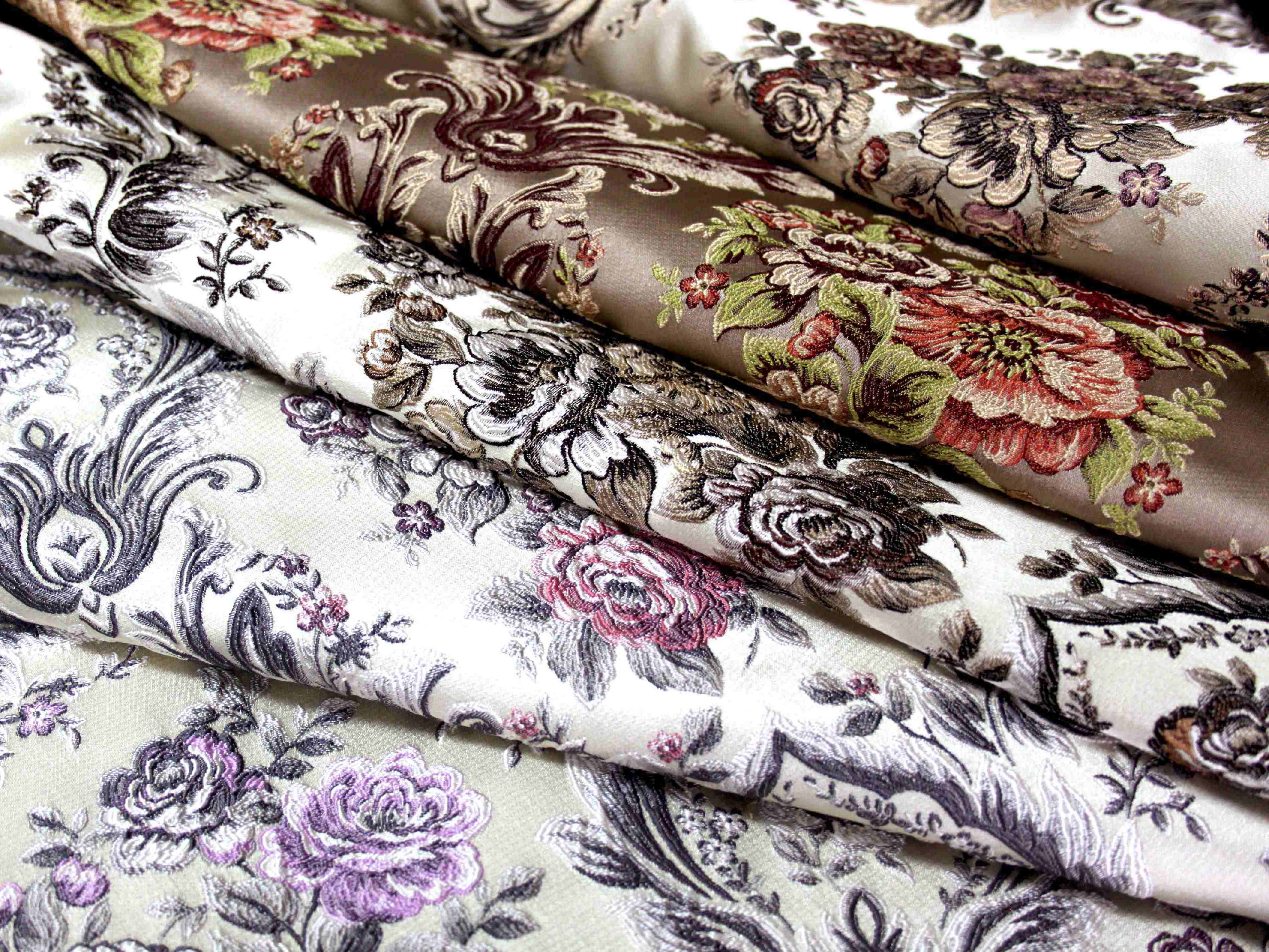 Линейка гармонично подчеркнёт геометрию мебели любых форм и размеров, будет прекрасно держать форму ещё долгие годы, не помнётся и, несмотря на элегантный внешний вид, не требует регулярного тщательного ухода. Эксклюзивная фактура, оригинальное плетение волокон гармонично дополняет колористическая карта из 5 насыщенных оттенков. Каждый цвет заставляет по-новому взглянуть на богатую фактуру полотна, украшенного изящным вензелями и цветочным узором.