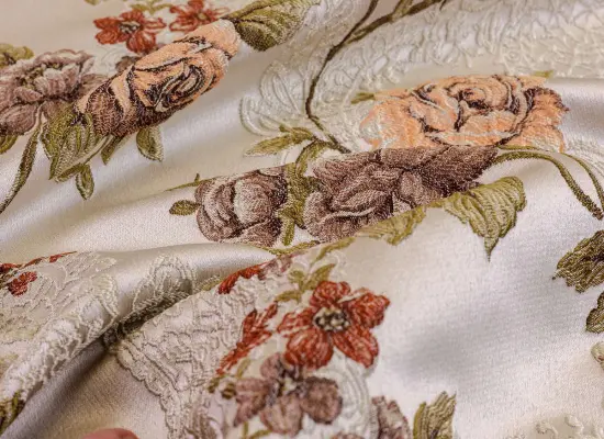 Основным лейтмотив коллекции жаккарда Markiza является сплетение изящных цветов с шикарным кружевом, в которых гармонично сочетаются, наполненный романтикой и нежностью, винтаж и элегантная классика.